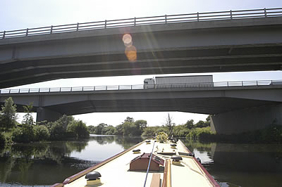 passes. I was aware of some juddering from the tiller and I wanted to check any fouling on the propeller. Like all inland waterways the canals and rivers have a certain amount of rubbish in them, plastic bags being some of the most obtrusive and potentially hazardous to a motor boater, and checking the propeller for fouling is something one needs to do on a regular basis. I should have done it before now. Indeed I know of people who check their prop about once a week. I was not aware of any particular problem but I did wonder if there was something round the prop as the prop wash was a bit exaggerated and there was the judder from the tiller. Like other boats, narrowboats have a thing called a weed hatch. The top of the weed hatch is sealed with a hatch cover which is screwed down. On FRILFORD the weed hatch is abaft the engine underneath the after deck. Indeed it is under my feet when I am standing on the after deck steering FRILFORD. However, the only time I tried to get at it, it took me about twenty minutes to remove various steps, boxes and bits of deck and then I could not get the hatch cover off. Defeated I put everything back, convinced myself, correctly at the time, I am sure, that there was nothing round the prop and continued on my way. Now I felt I needed to get at the prop, but I was not prepared to go through the same palaver. The surveyor who inspected FRILFORD for me before I bought her commented on this and suggested I get a second hatch cut in the after deck so I could get at the weed hatch from outside. I didn’t but can certainly see why what is a good idea.